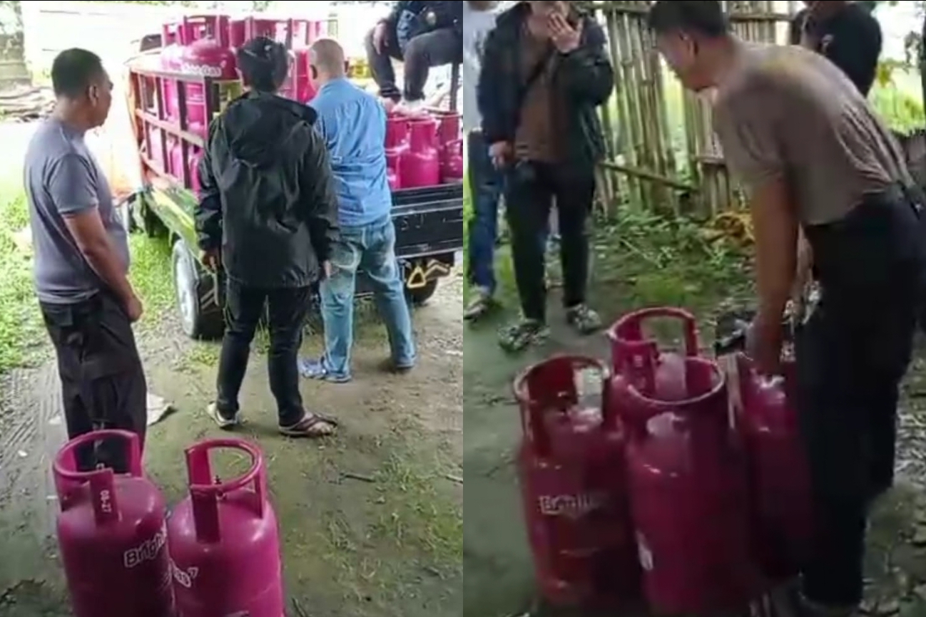 Dalam video terlihat jelas ada beberapa anggota Polsek Parung Panjang menunjukkan tabung gas 12 kg yang terisi penuh yang diduga hasil dari penyuntikan.