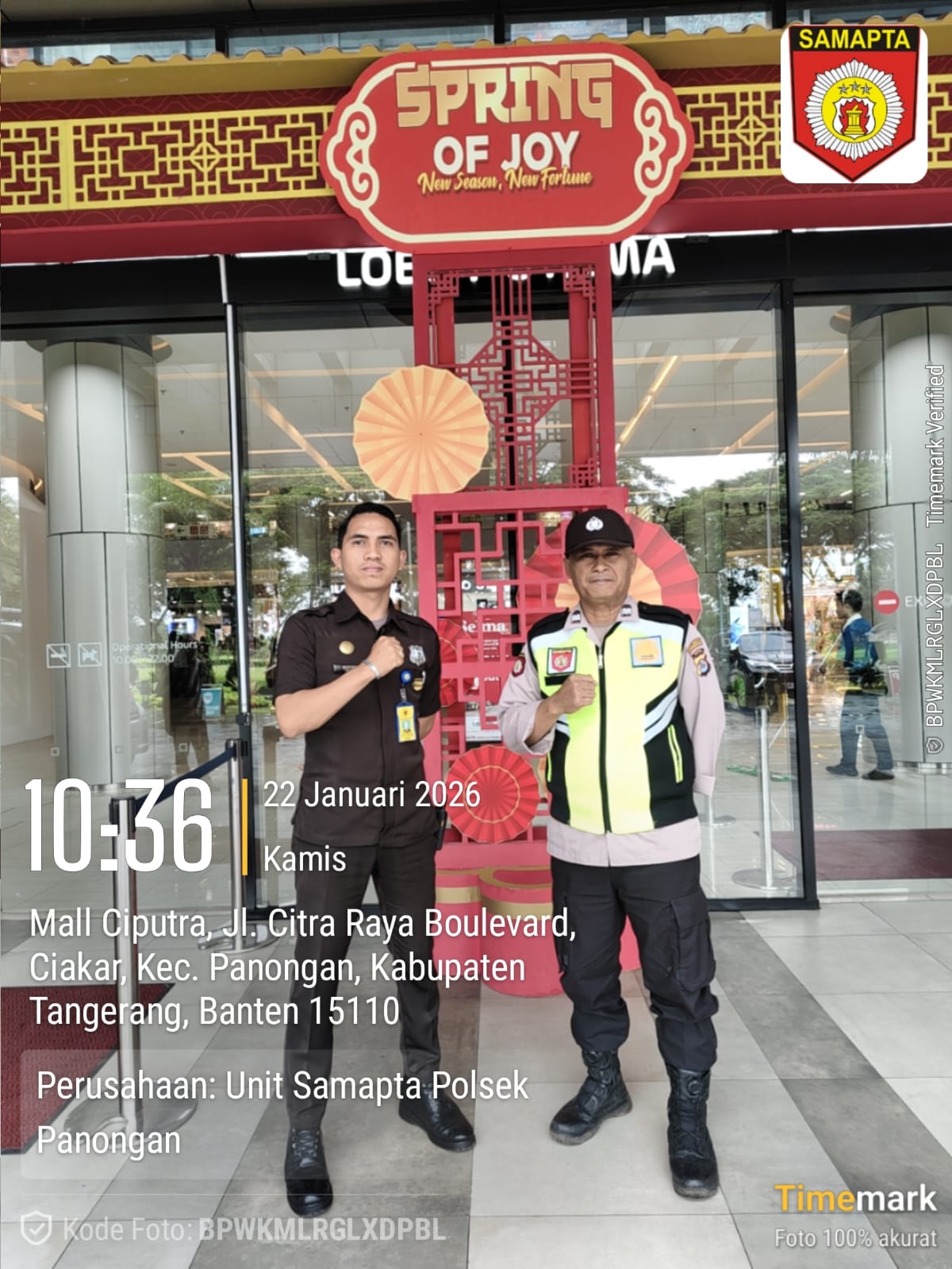 Patroli Pusaka dilaksanakan oleh personel piket Samapta Polsek Panongan, yakni Aiptu Dhermawan dan Brigadir Faisal Afdal, dengan sasaran sejumlah pusat keramaian, di antaranya Mall Ciputra Citra Raya dan FIF Finance Citra Raya, Kecamatan Panongan, Kabupaten Tangerang.