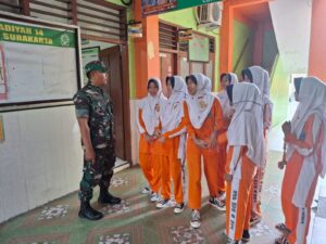 Kriminalxpost.com || Surakarta – Babinsa Danukusuman Koramil 03 Serengan Kodim 0735 Surakarta Serda Tito memberikan pengarahan dan motivasi kepada para siswa siswi SMP Muhammadiyah 8 Surakarta Jl. Sri Kuncoro No. 12 Danukusuman Serengan Kota Surakarta, Selasa Pukul 08.00 WIB (21/10/2025)