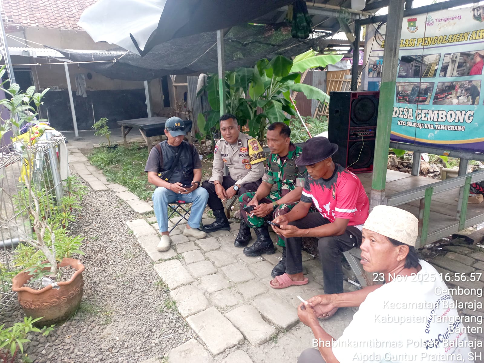 Kriminalxspot.com || TANGERANG – Dalam upaya menjaga stabilitas keamanan dan ketertiban masyarakat (kamtibmas), Bhabinkamtibmas Polsek Balaraja Aipda Guntur Pratama SH. melaksanakan kegiatan sambang serta patroli dialogis di Kp. Ampel RT 01/06 Desa Gembong Kecamatan Balaraja Kab. Tangerang. Minggu (23/11/2025).