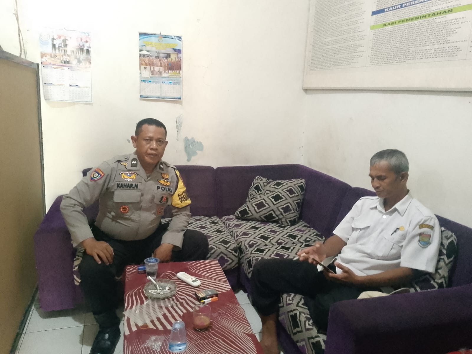 Dalam kesempatan tersebut, Aipda Kahar menyampaikan pesan-pesan kamtibmas serta mengajak aparatur desa untuk bersama-sama menjaga situasi keamanan dan ketertiban di lingkungan masyarakat. Upaya ini dilakukan sebagai langkah antisipasi terhadap potensi gangguan kamtibmas serta untuk menciptakan suasana yang aman dan kondusif.