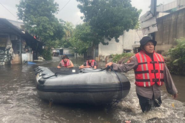 Dit Samapta PMJ Laksanakan Patroli Jaga Jakarta Siaga Bencana di Komplek Polri Pondok Karya Jakarta Selatan.