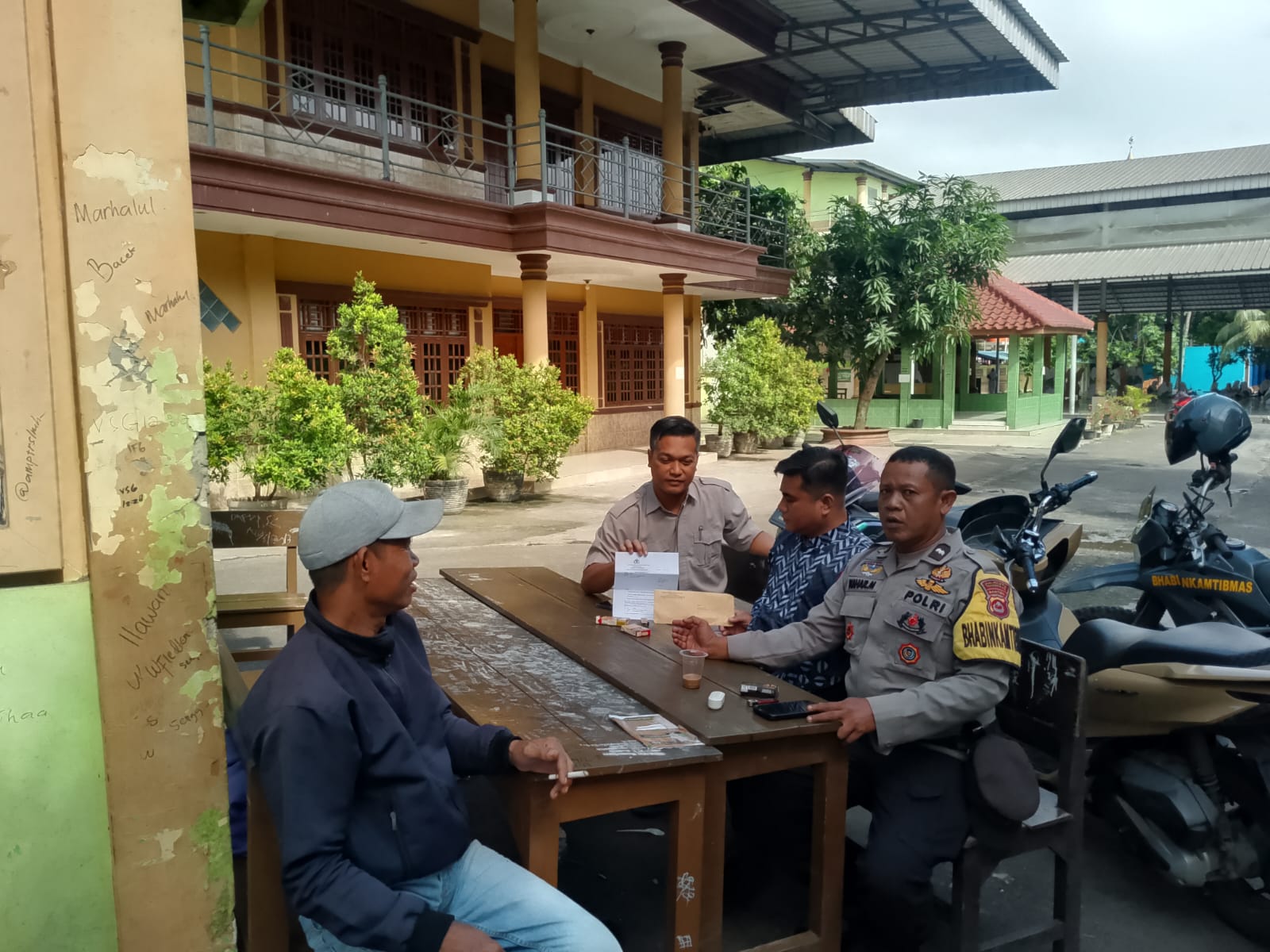Melalui konsep Warung Bhabinkamtibmas, Bhabinkamtibmas melakukan sambang dan kunjungan dialogis dengan warga dalam suasana santai dan penuh keakraban. Dalam pertemuan tersebut, masyarakat diberikan ruang untuk menyampaikan berbagai aspirasi, keluhan, maupun masukan terkait situasi keamanan dan ketertiban di lingkungan sekitar.