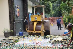“Kegiatan ini merupakan pemusnahan bersama barang bukti miras hasil KRYD dan tipiring Polresta Cirebon, Kejaksaan dan Pengadilan Negeri Cirebon sebagai bentuk pertanggungjawaban dari kegiatan razia yang dilaksanakan untuk mencegah potensi gangguan kamtibmas di wilayah hukum Polresta Cirebon,” ujar Kombes Pol Sumarni, S.I.K, S.H, M.H