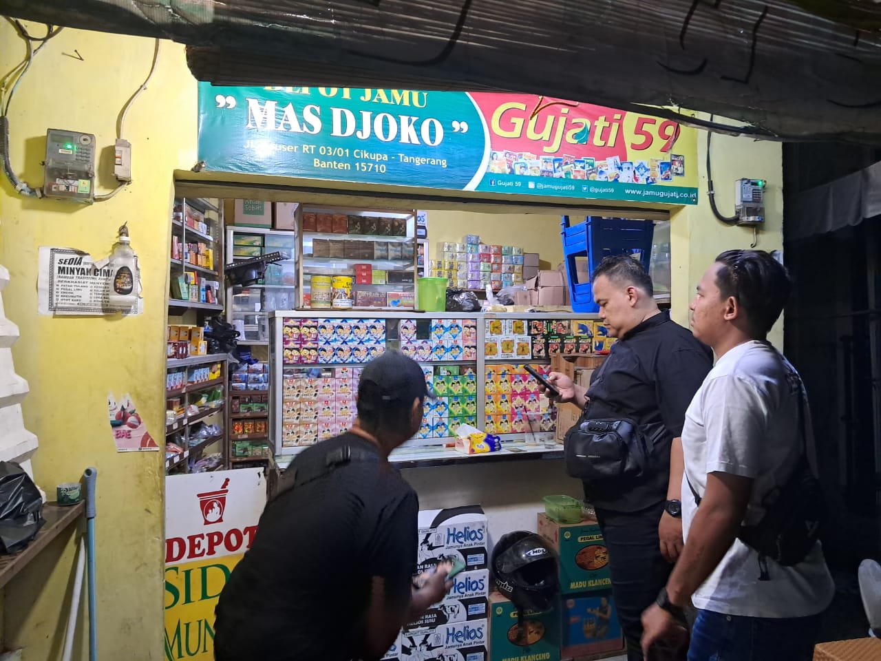 Dari hasil operasi tersebut, petugas berhasil mengamankan lima botol minuman keras jenis anggur merah merek Orang Tua dari dua lokasi toko jamu di wilayah Cikupa.