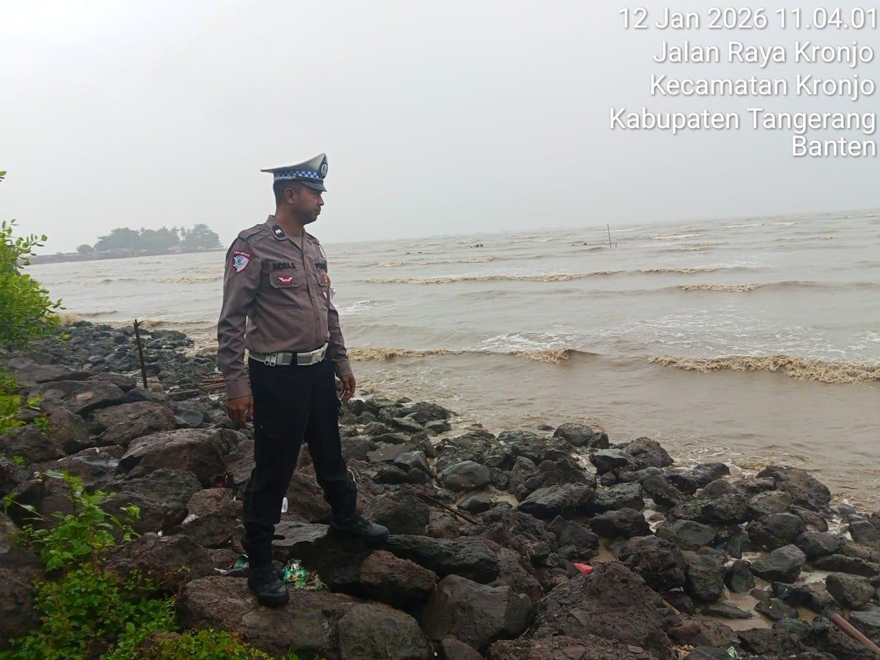 Kriminalxpost.com || Tangerang – Polsek Kronjo, Polresta Tangerang, Polda Banten melaksanakan kegiatan pemantauan kondisi air laut di kawasan wisata religi Pantai Pulau Cangkir, Desa Kronjo, Kecamatan Kronjo, Kabupaten Tangerang, Senin (12/1/2026).