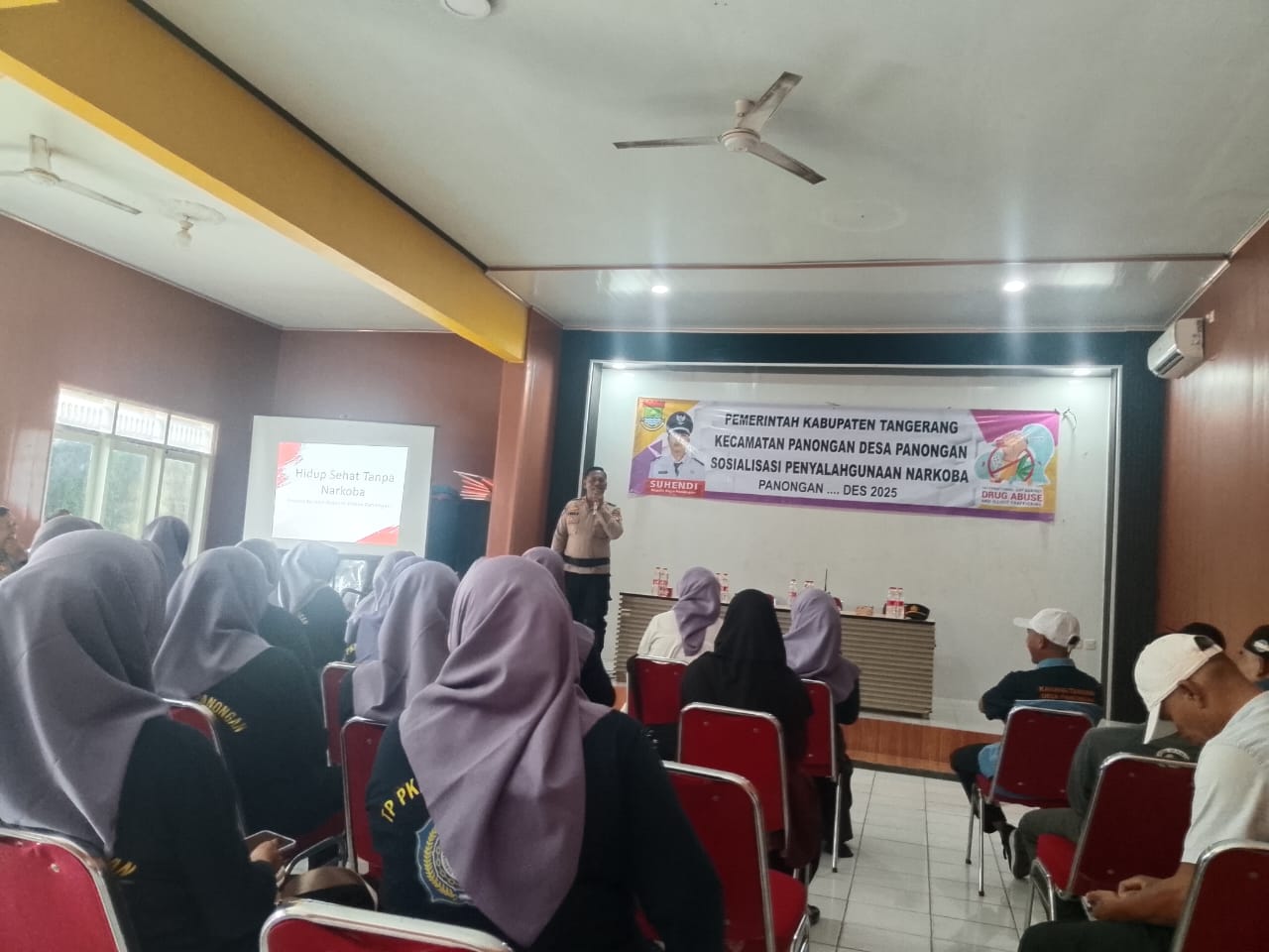 Acara dihadiri oleh Kepala Desa Panongan Suhendi selaku penanggung jawab kegiatan, Kasi Binwas Ibu Yuyun, Kanit Binmas Polsek Panongan Iptu Agus Susanto, Bhabinkamtibmas Aipda Herman F, para Ketua RT/RW, tokoh agama, tokoh masyarakat, tokoh pemuda, serta ibu-ibu PKK se-Desa Panongan. Dalam kegiatan tersebut, peserta diberikan pemahaman mengenai jenis-jenis narkoba, dampak negatif penyalahgunaannya terhadap kesehatan dan kehidupan sosial, serta pentingnya peran keluarga dan lingkungan dalam upaya pencegahan.