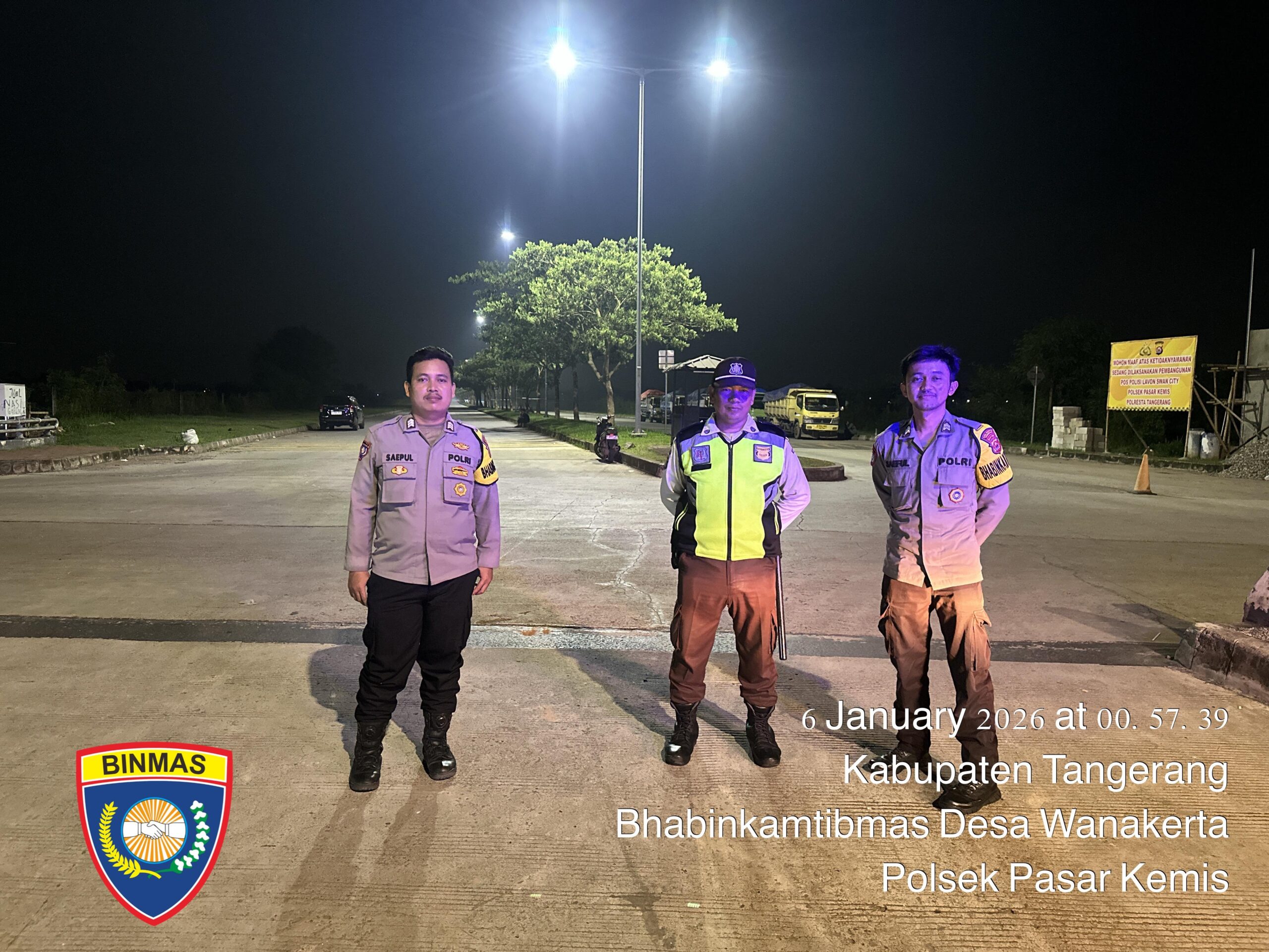 Patroli dimulai sekitar pukul 00.50 WIB di sepanjang Jalan Raya Lavon 2, Desa Sindang Jaya, Kecamatan Sindang Jaya, Kabupaten Tangerang. Pelaksanaan dipimpin langsung oleh personel Bhabinkamtibmas Brigadir Saepul Bahri, S.H. bersama Briptu M. Saeful Milah.