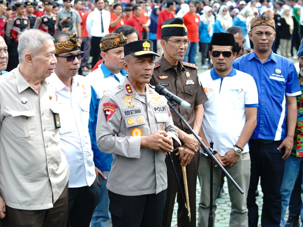 Dalam amanatnya, Kapolda Jabar Irjen Pol. Rudi Setiawan menyampaikan bahwa kegiatan ini merupakan bentuk sinergitas antara kepolisian, pemerintah, dan elemen buruh dalam menjaga situasi keamanan dan ketertiban masyarakat (kamtibmas) di Jawa Barat. “Melalui semangat ‘Sauyunan Ngajaga Lembur’ yang berarti bersama-sama menjaga kampung halaman, kita wujudkan Jawa Barat yang aman, kondusif, serta produktif bagi seluruh masyarakat,” ujarnya, Selasa (11/11/2025)