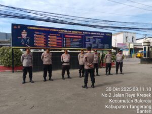 Dalam arahannya, Wakapolsek Balaraja menyampaikan pentingnya menjaga kedisiplinan dan profesionalitas dalam memberikan pelayanan kepada masyarakat.